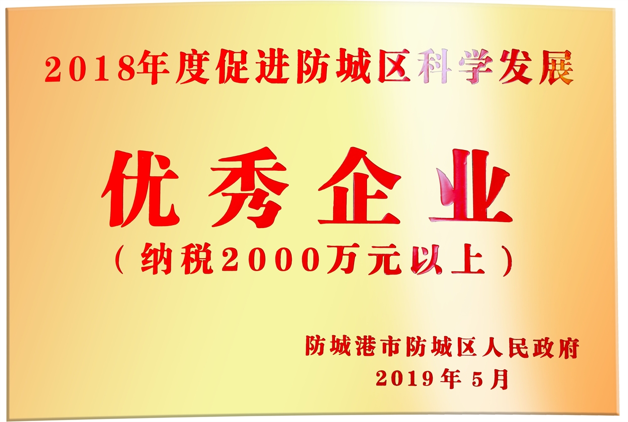 2018年度促進防城區科學發展優秀企業